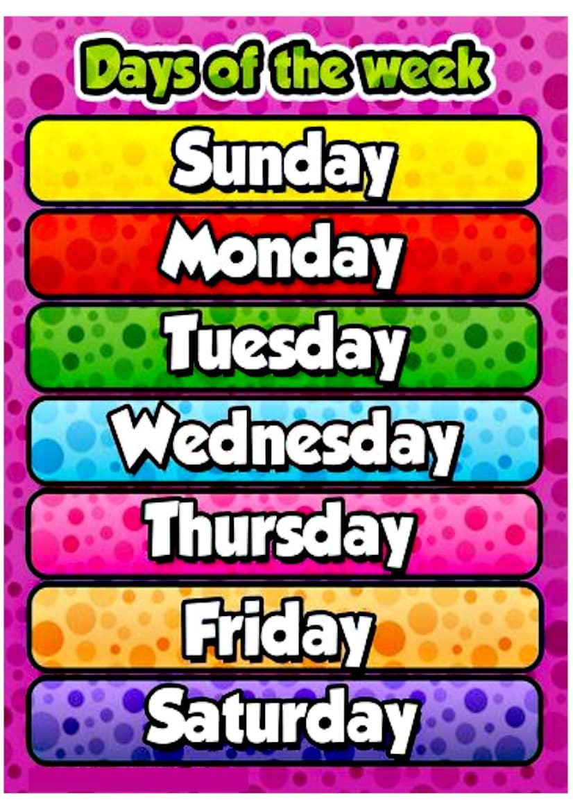Votre petit pourra apprendre les jours de la semaine en anglais mais aussi :