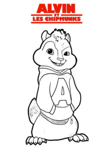 Ce coloriage de Alvin et Chipmunks affiche un Théodore tout heureux et portant un sweat à capuche vert pistache. C’est sa couleur préférée, donc il ne faudra pas faire une erreur. Comme Alvin, le pelage de Théodore est à colorier en beige et en marron. N’oubliez pas de marquer les sourcils en marron foncé, les yeux en noir et le petit nez en marron pâle.