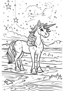 Si votre enfant aime colorier des licornes et des créatures magiques, alors cette page devrait vous intéresser, car elle contient :