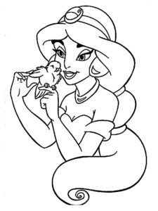 Pour ce second coloriage de princesse Disney à imprimer, nous vous proposons d’apprendre à colorier Jasmine, la fille du sultan d’Agrabah et la fiancée d’Aladin.