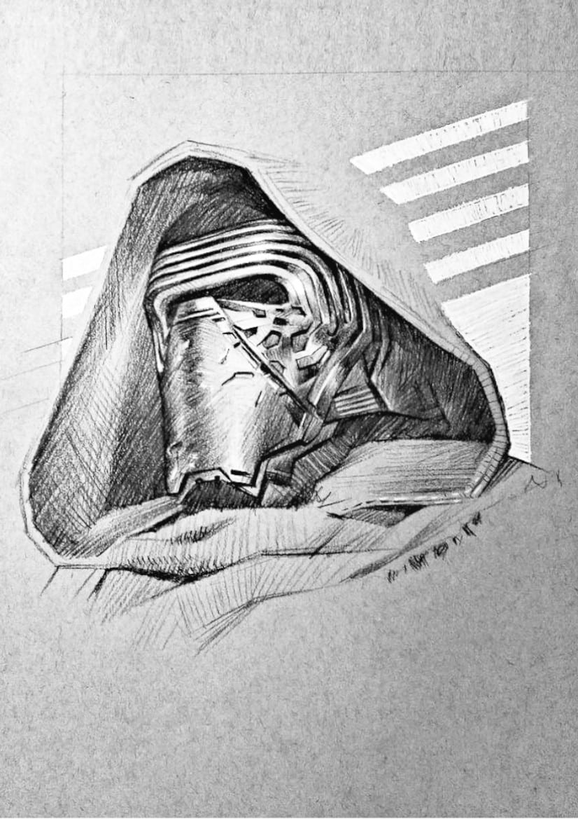 Pour réussir un coloriage star wars de kylo ren, l’important est de jouer avec les contrastes entre l’ombre et la lumière, car ce personnage incarne toute l’ambiguïté du côté obscur.