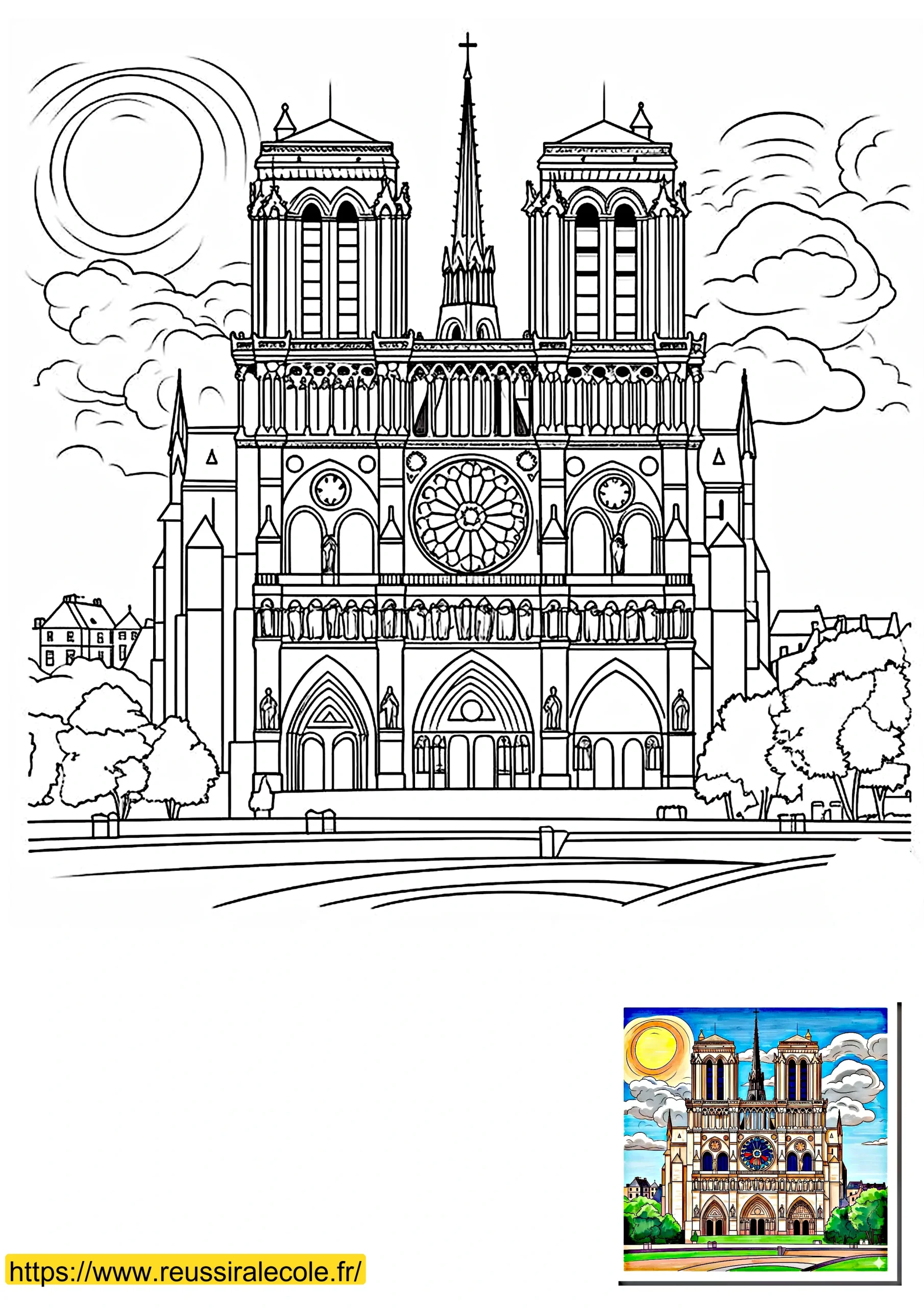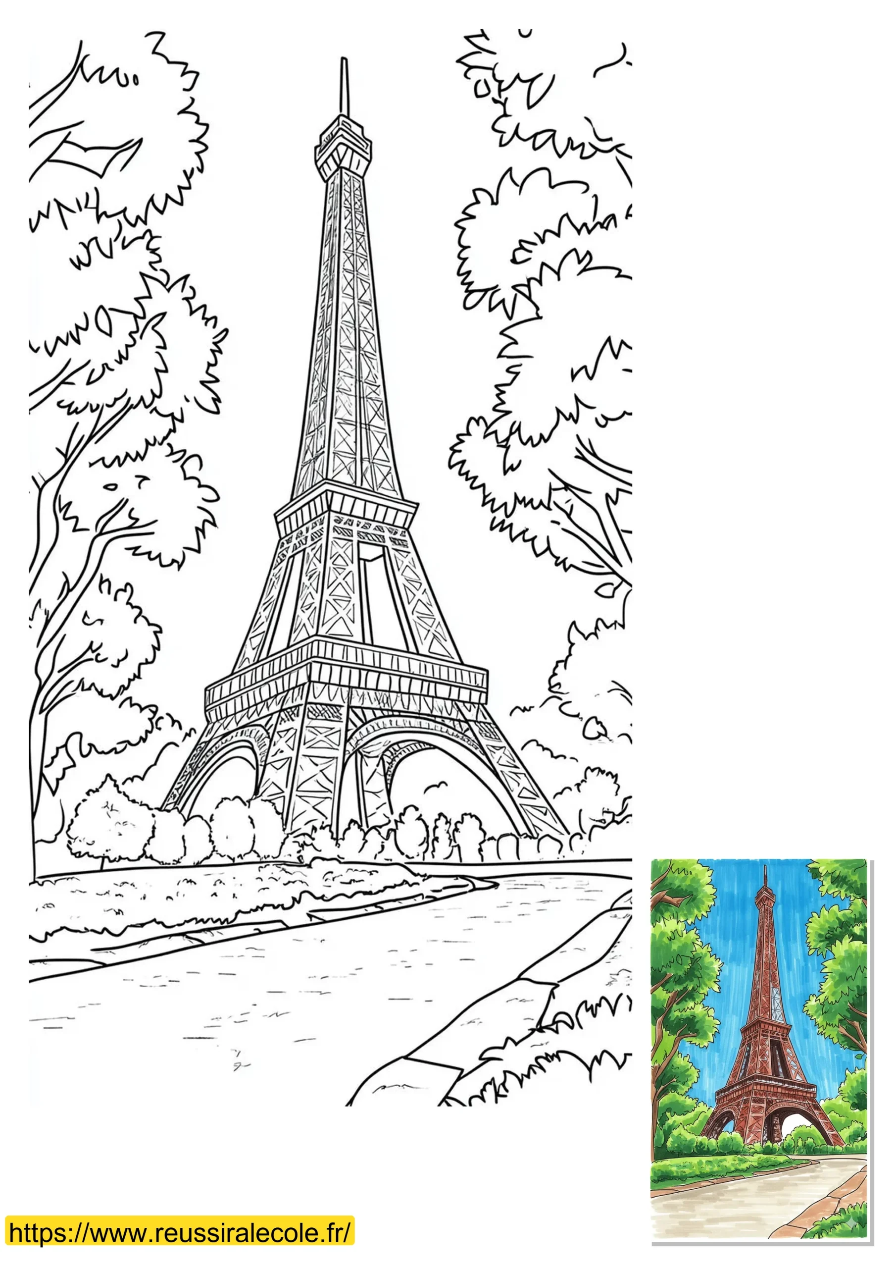 Dans ce premier chapitre, vous allez explorer la richesse de la capitale. Bien sûr, vous retrouverez l’indispensable coloriage Paris de la Tour Eiffel, s’élevant fièrement au-dessus du Champ-de-Mars.