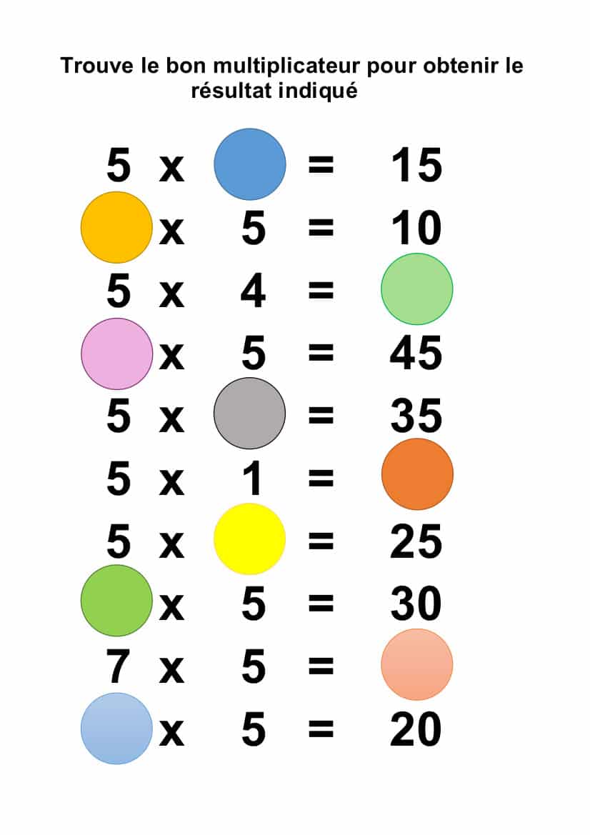 Exemple : 5×2 = 10 ; 5×4 = 20 ; 5×12 = 60 - Quand on multiplie 5 par un nombre impair, le résultat fini par 5.