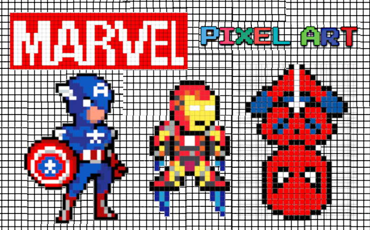 Imprimez de superbes images de tous les héros Marvel en version Pixel Art. Reproduisez nos modèles et amusez vous à créer vos propres dessins pi