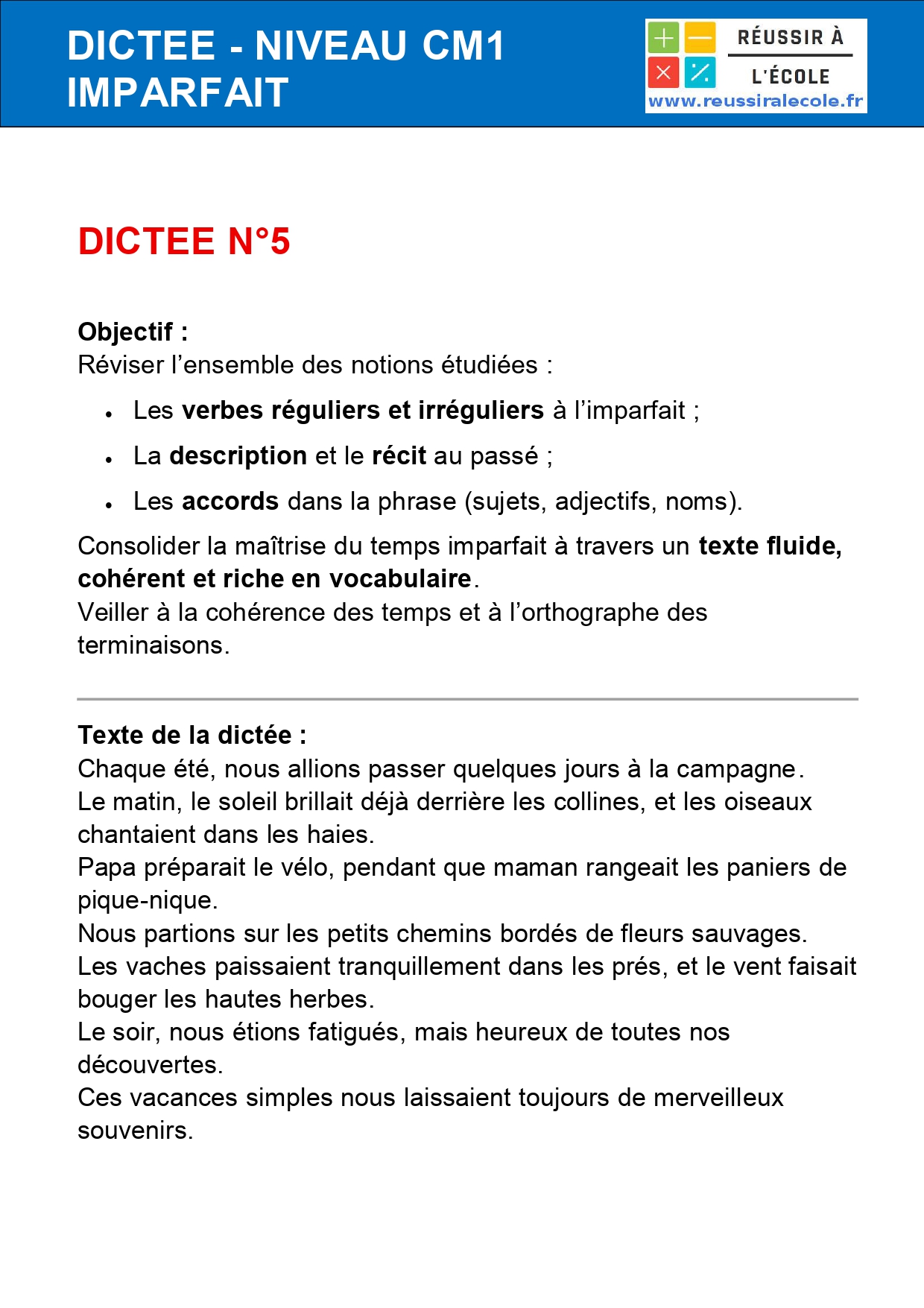 Dictée CM1 Imparfait : Exercices GRATUITS (PDF)
