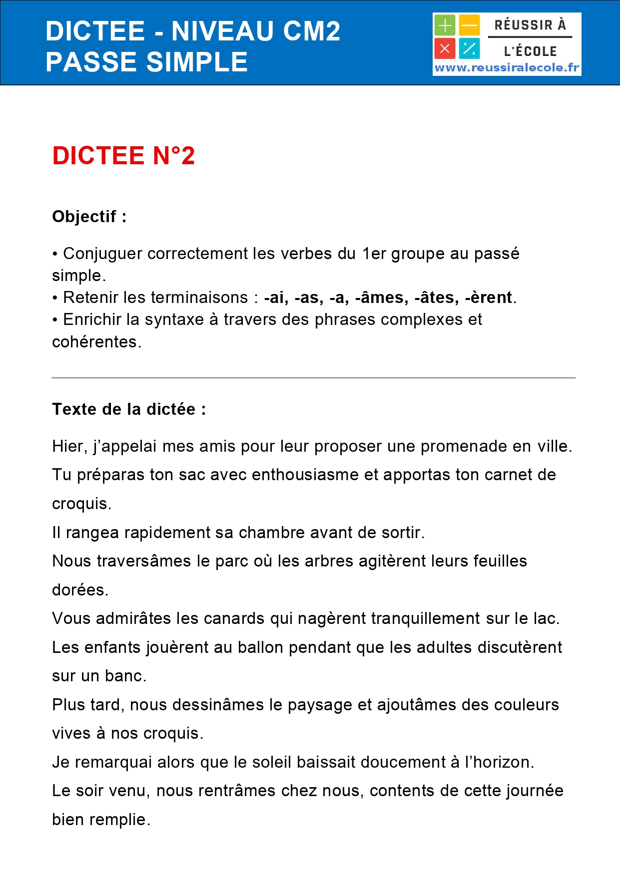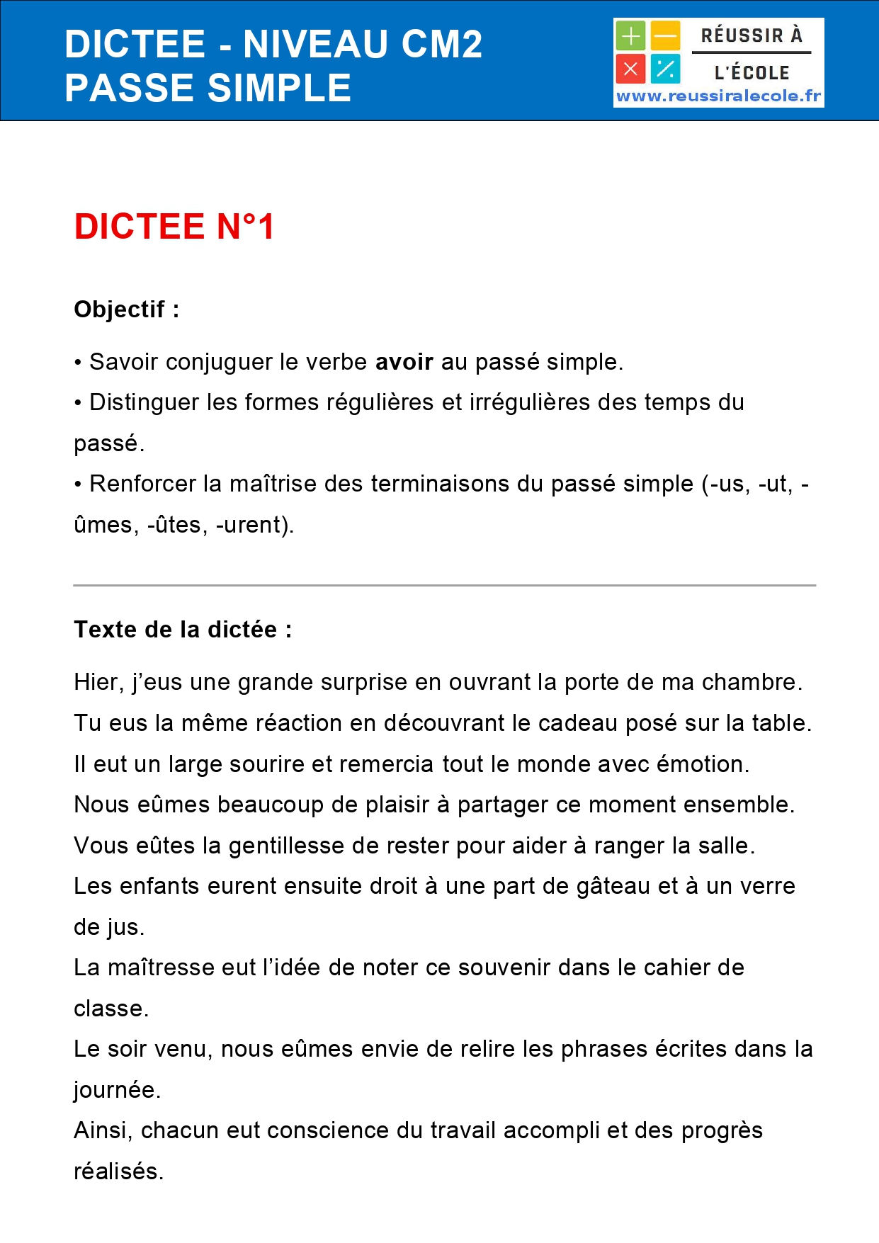 Dictée CM2 Passé Simple: Exercices GRATUITS (PDF)