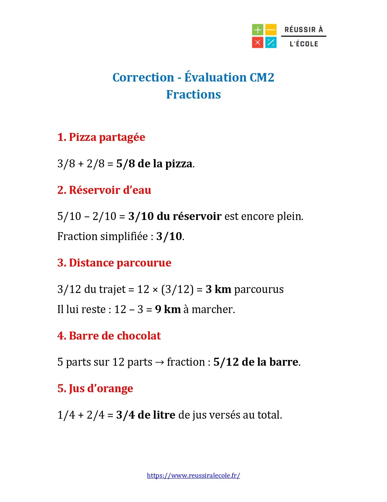 Ce type de tâche contextualisée ancre durablement la compréhension des fractions et peut être utilisé en contrôle, en révision ou en entraînement.
