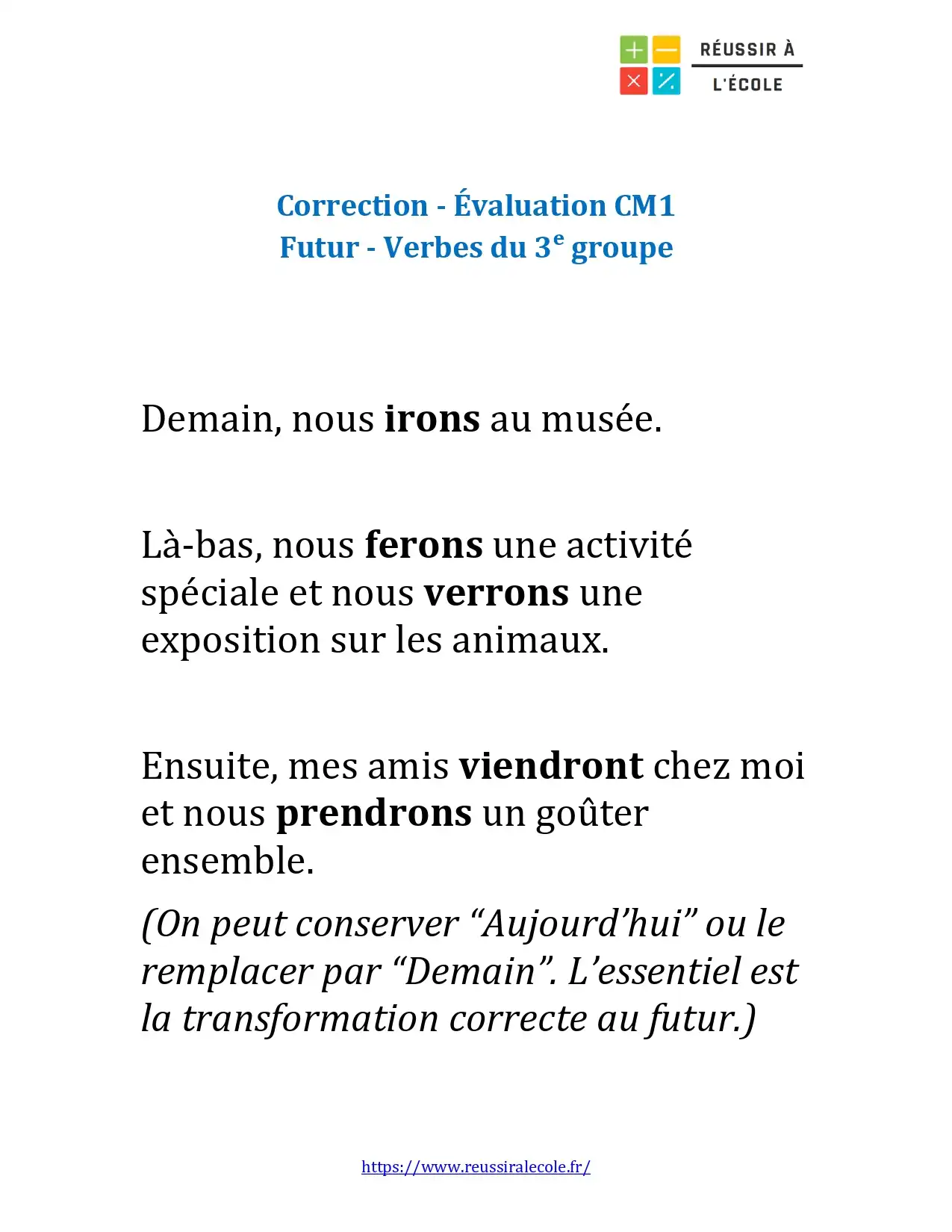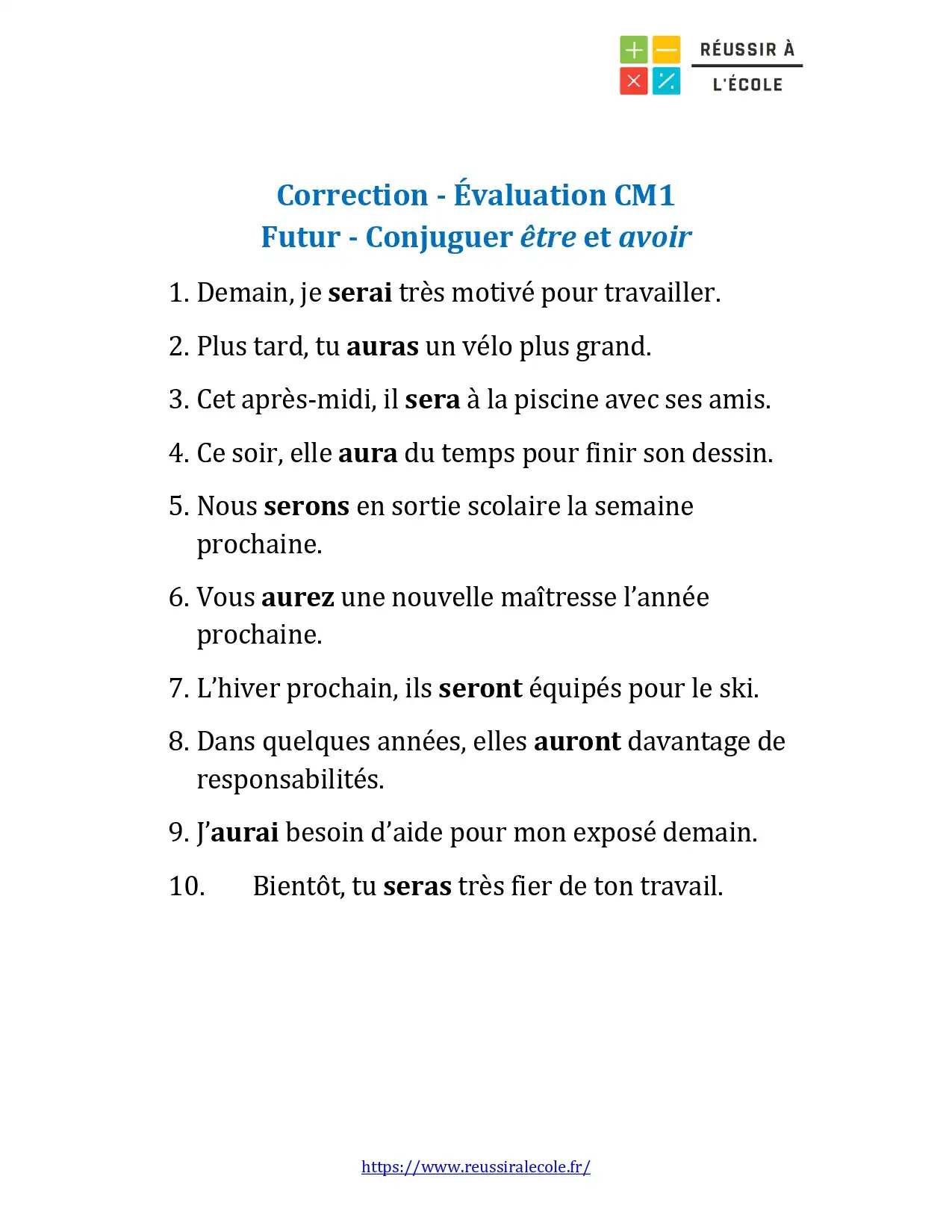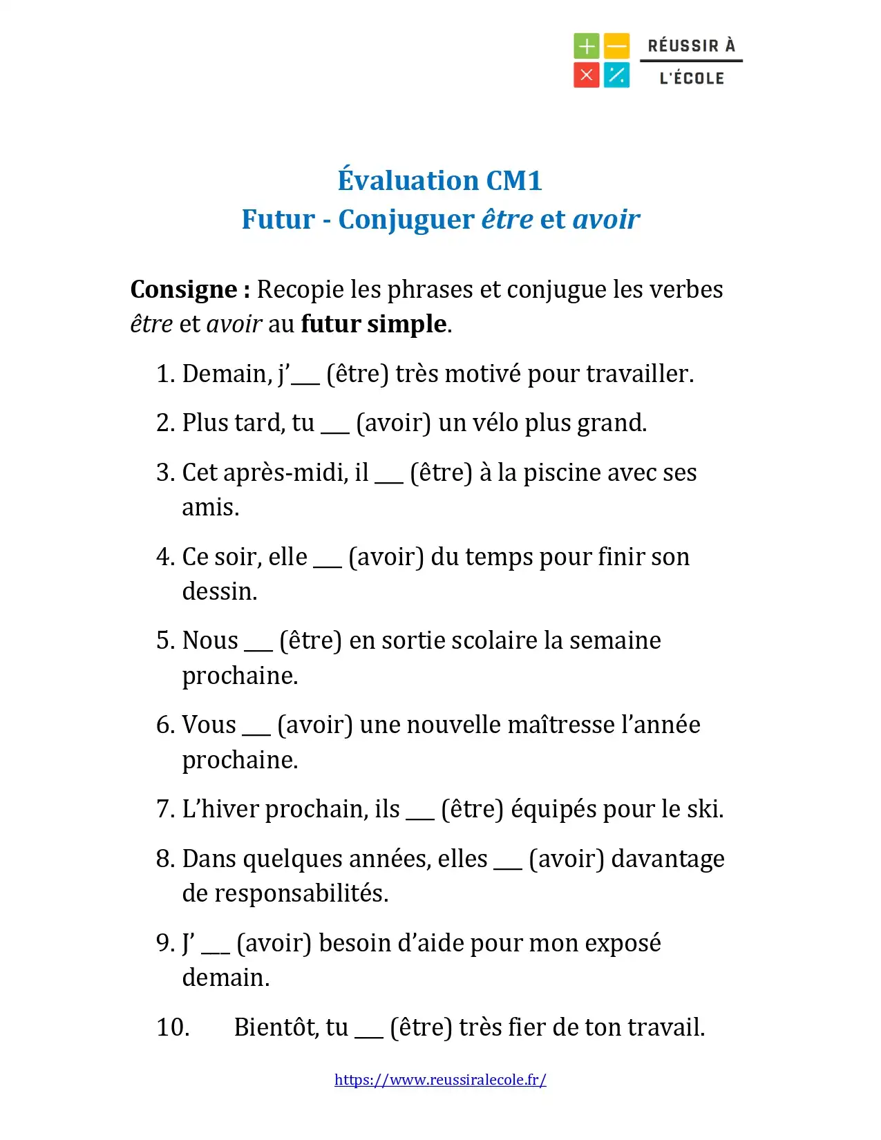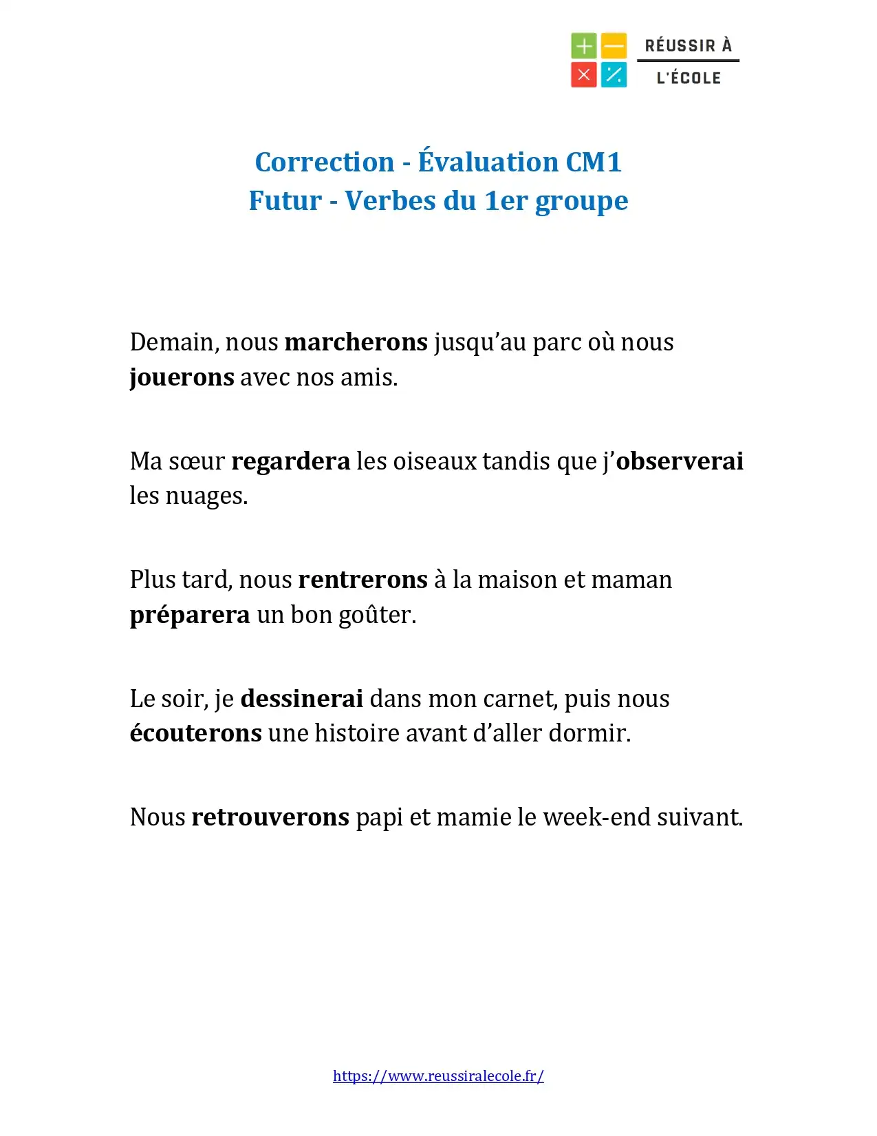 Votre enfant est en classe de CM1 et vous cherchez une évaluation courte mais efficace pour revoir la conjugaison du futur ?