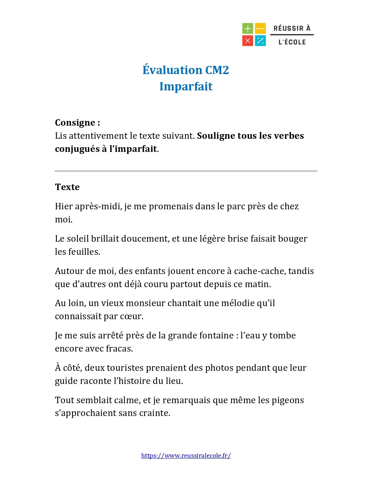 Pour commencer, nous vous proposons de télécharger un exercice qui a pour objectif de vérifier la capacité de l’élève à reconnaître l’imparfait dans un texte. Cette première évaluation niveau CM2 sur l’imparfait est idéale pour mesurer la compréhension globale du temps avant d’aborder la conjugaison proprement dite.