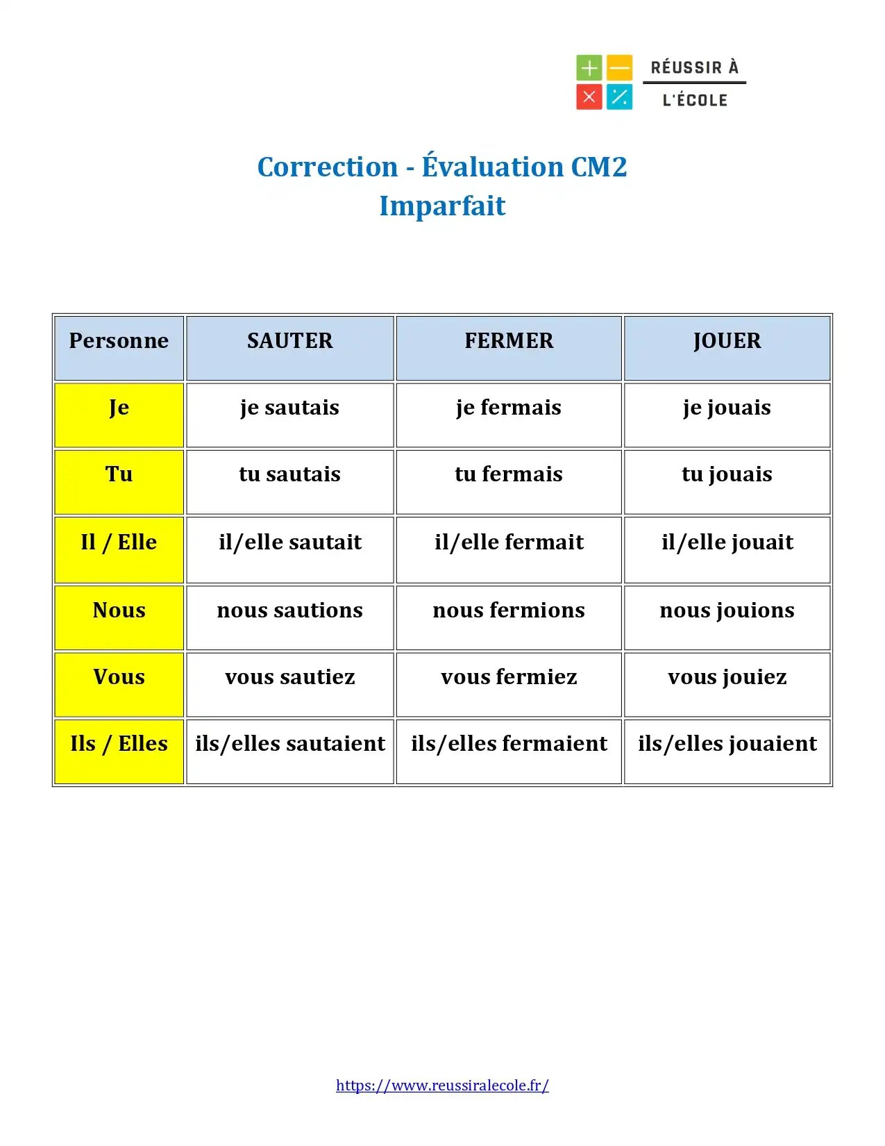 Evaluation niveau CM2 sur l’imparfait : verbes du premier groupe