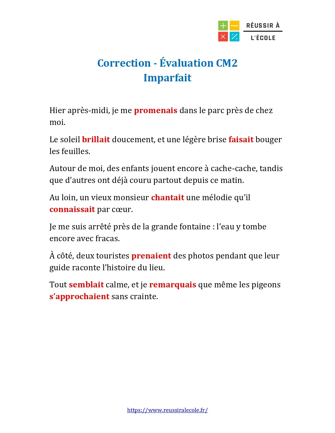 Si vous souhaitez proposer à un élève de CM2 une évaluation sur l imparfait, cette page devrait vous être utile.