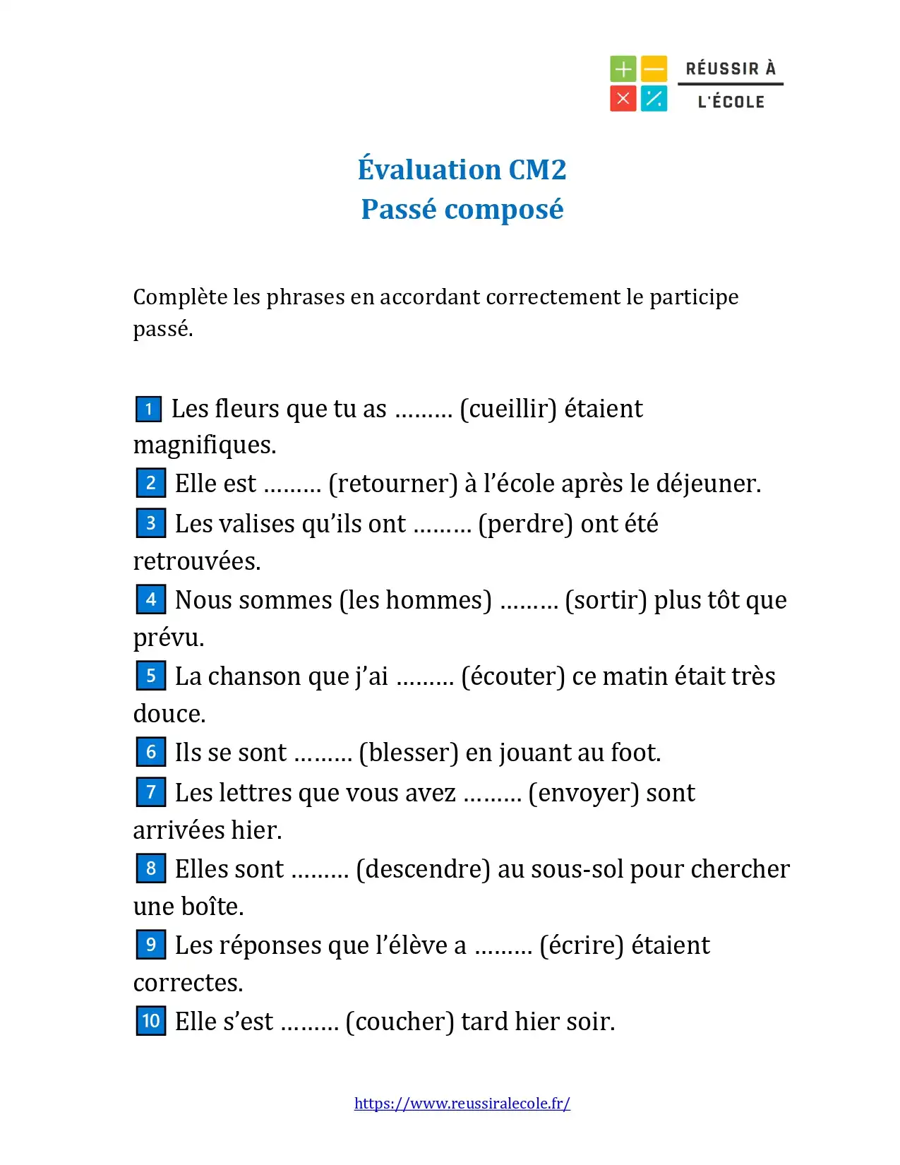 En téléchargeant cette evaluation niveau CM2 sur le passé composé, vous pourrez proposer une activité immédiatement exploitable en classe entière ou lors d’un travail individualisé. Le format PDF vous permet également de la réimprimer facilement et d’en conserver une trace pour les évaluations ultérieures.