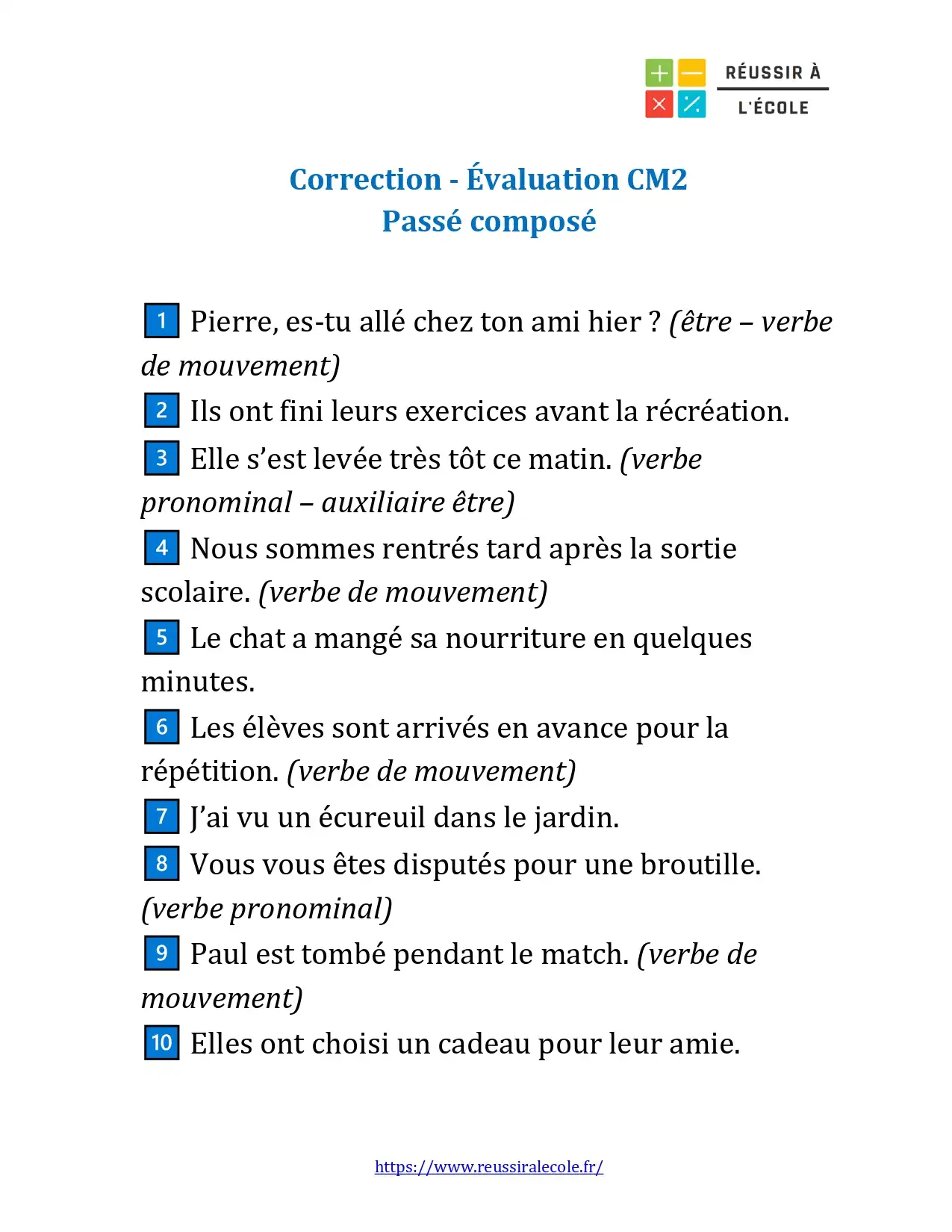 L’intérêt pédagogique est double : vous pouvez l’utiliser comme évaluation finale en CM2 sur le passé composé ou comme fiche de remédiation.