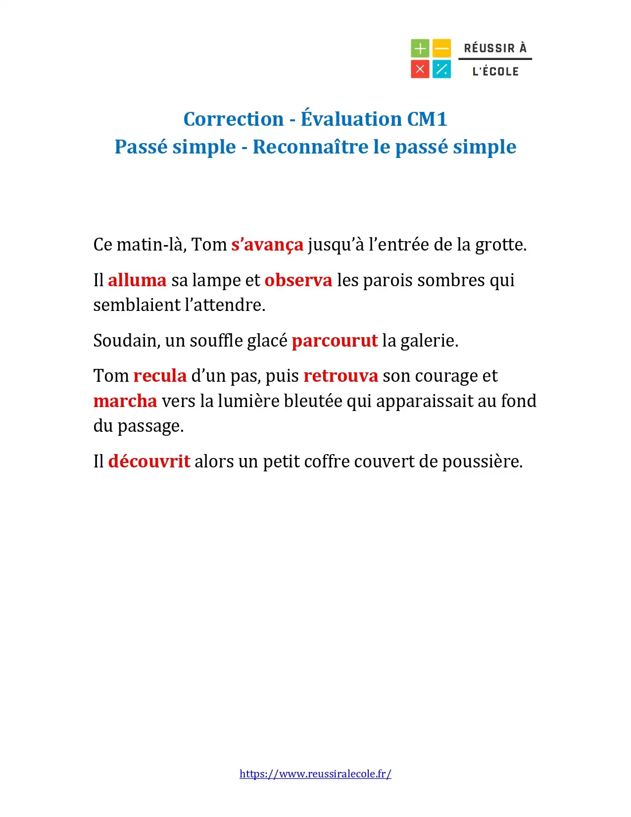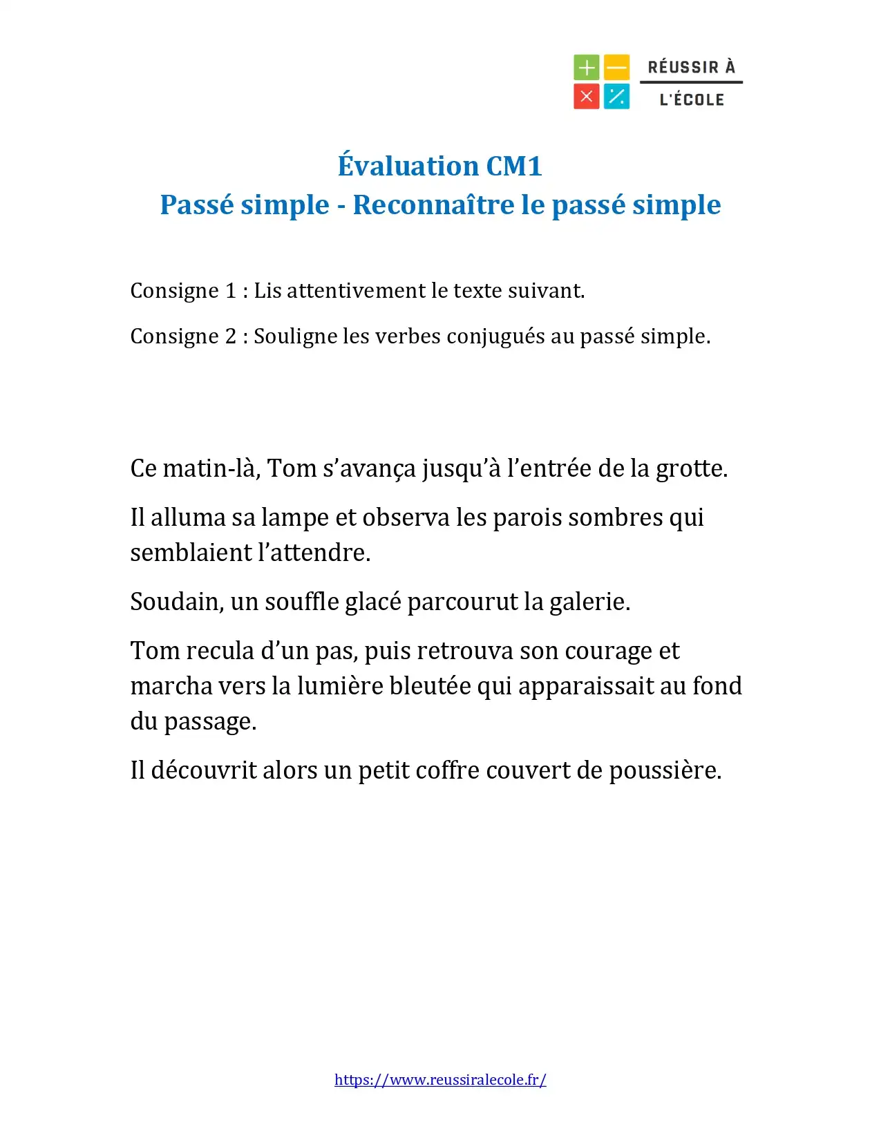 évaluation passé simple cm1 : reconnaître le passé simple dans un texte