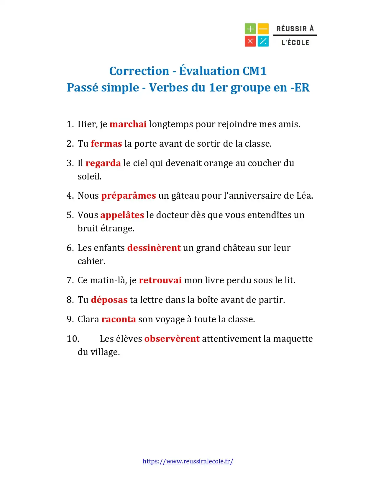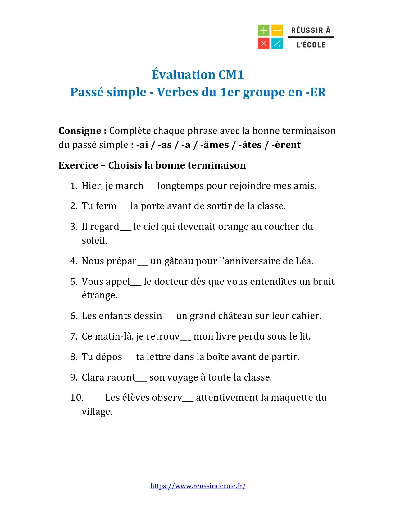 Dans ce premier chapitre, nous vous proposons de télécharger et d’imprimer un exercice entièrement consacré aux verbes du premier groupe au passé simple.