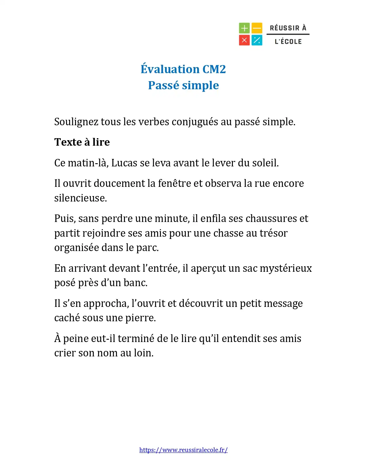 Cette évaluation est particulièrement efficace pour approfondir l’étude du passé simple en CM2, car elle associe analyse, compréhension du texte et réécriture. La fiche PDF, disponible gratuitement, peut être exploitée en classe entière ou pour un travail d’entraînement plus individualisé.