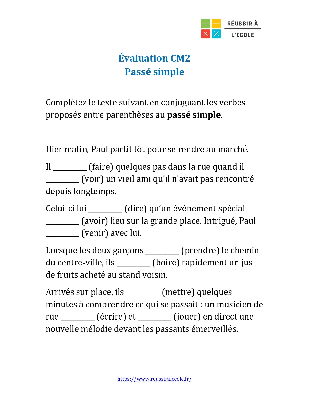 Si vous recherchez une évaluation niveau CM2 sur le passé simple à utiliser à la maison ou en classe, alors cette page devrait vous être utile.