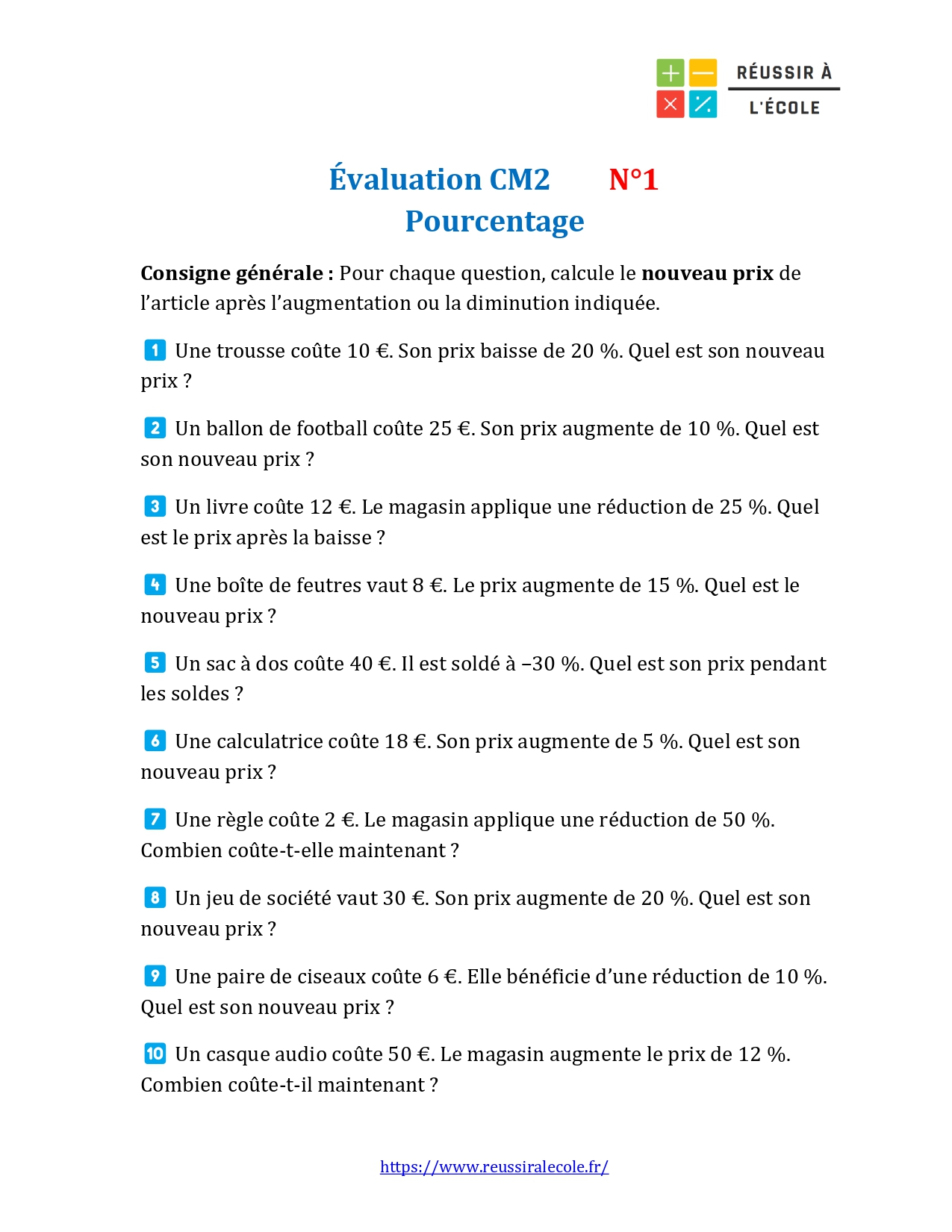 Si vous cherchez des exercices simples pour tester votre enfant dans son apprentissage des pourcentages, alors cet article devrait vous intéresser. En effet, il permet de télécharger et d’imprimer gratuitement plusieurs fiches d evaluation niveau CM2 sur la notion de pourcentage.