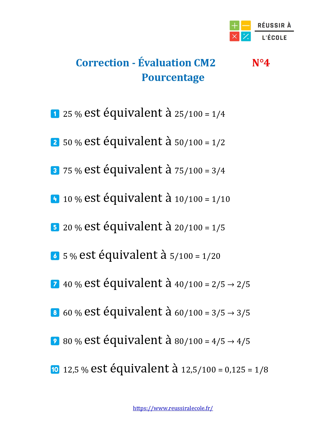 Dans ce quatrième chapitre, vous pourrez télécharger une evaluation sur le pourcentage niveau CM2 accompagnée de sa correction complète, idéale pour un travail autonome.