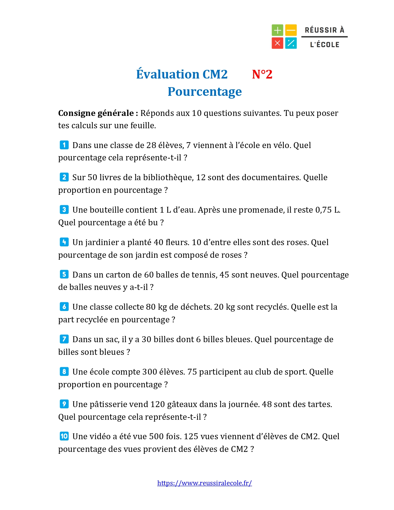 Bienvenue sur notre page intitulé « Evaluation Pourcentage niveau CM2 » !