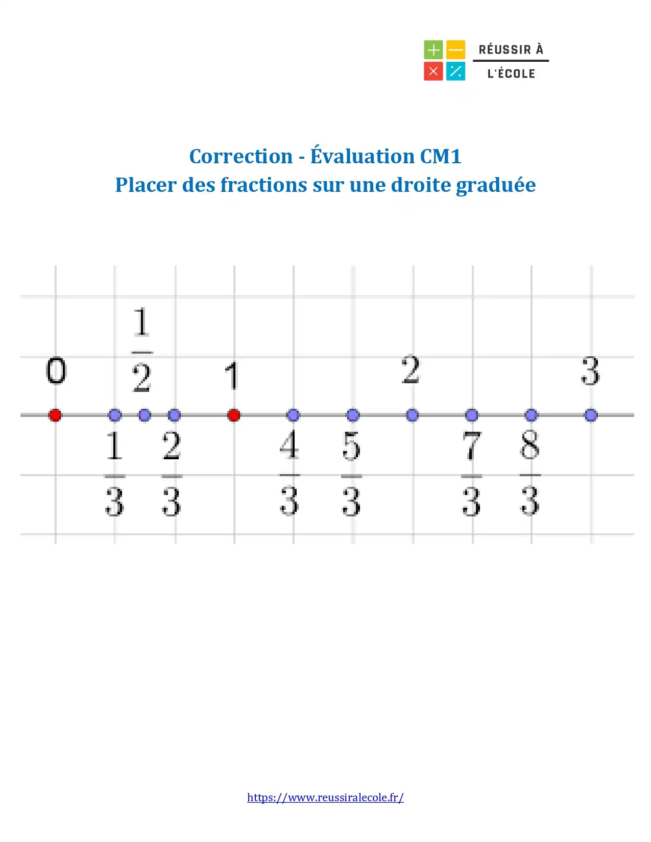 evaluation fraction CM1 avec corrigé : représentation sur une droite graduée