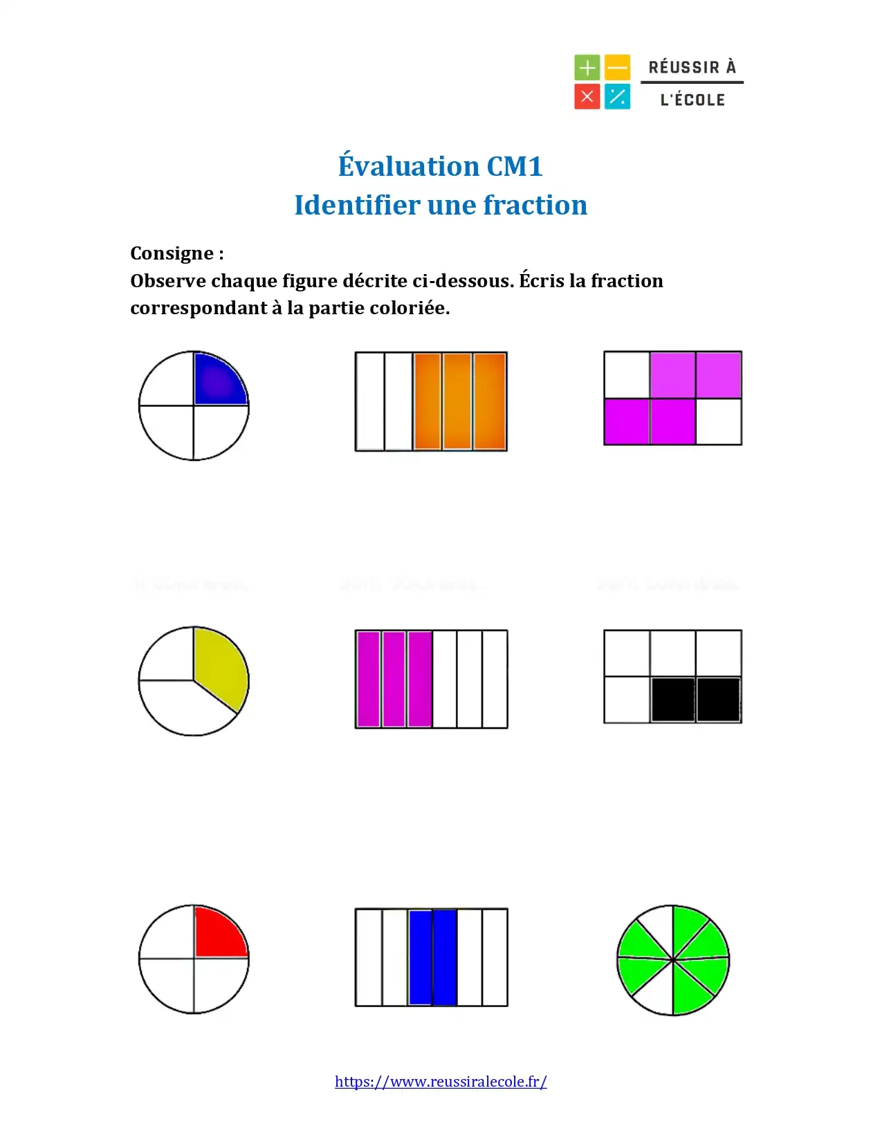• une évaluation CM1 sur l’identification des fractions à partir de représentations graphiques