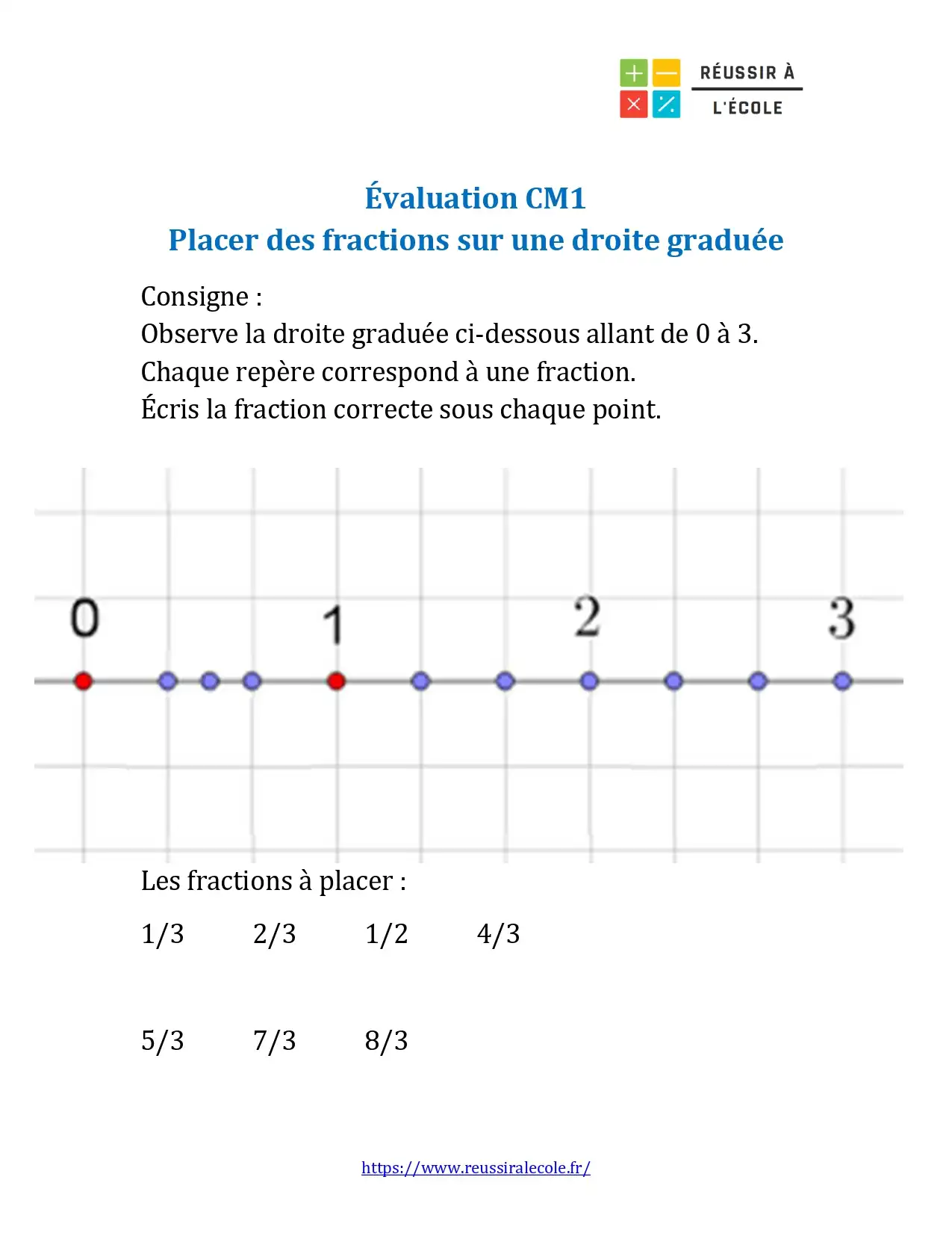• une evaluation niveau CM1 sur le placement des fractions sur une droite graduée