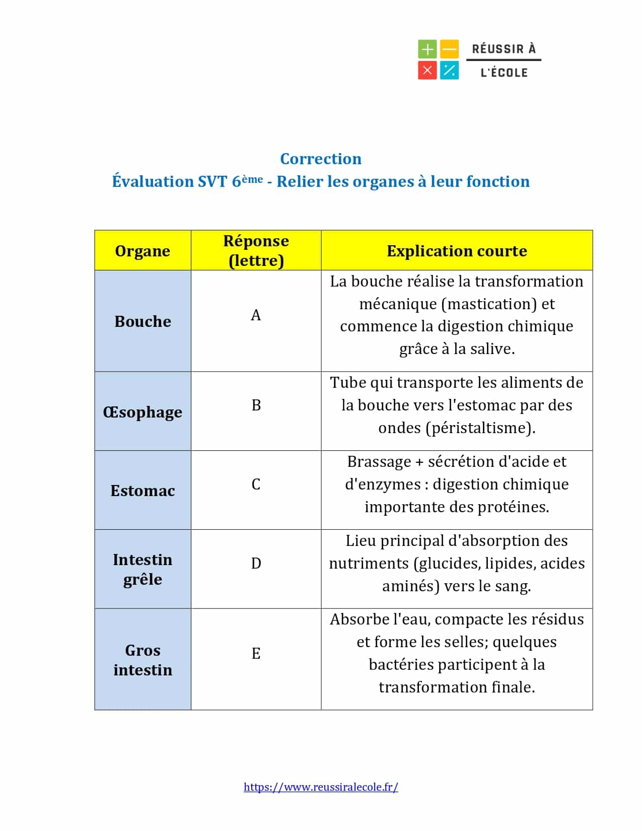 L’objectif est d’aider les élèves à mieux comprendre le rôle de chaque organe dans le processus de digestion. Sur la fiche, plusieurs organes du système digestif sont représentés : la bouche, l’œsophage, l’estomac, l’intestin grêle et le gros intestin. L’élève doit relier chaque organe à sa fonction : transformation des aliments, transport, digestion chimique ou absorption des nutriments.