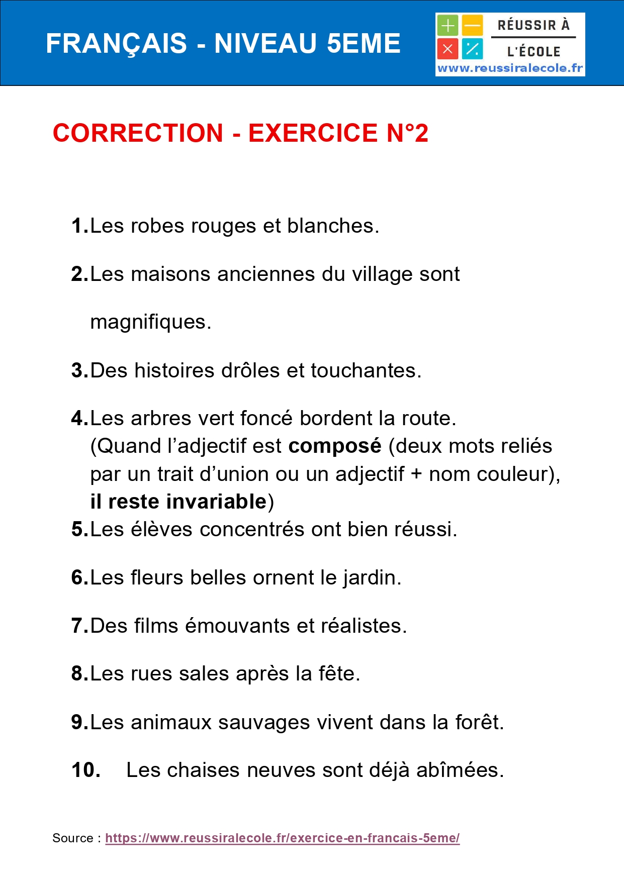 Cet exercice de francais pour élève de 5eme permet de s’entraîner à accorder correctement les adjectifs avec les noms qu’ils complètent. Il s’adresse à celles et ceux qui souhaitent consolider leurs connaissances en grammaire et en orthographe.