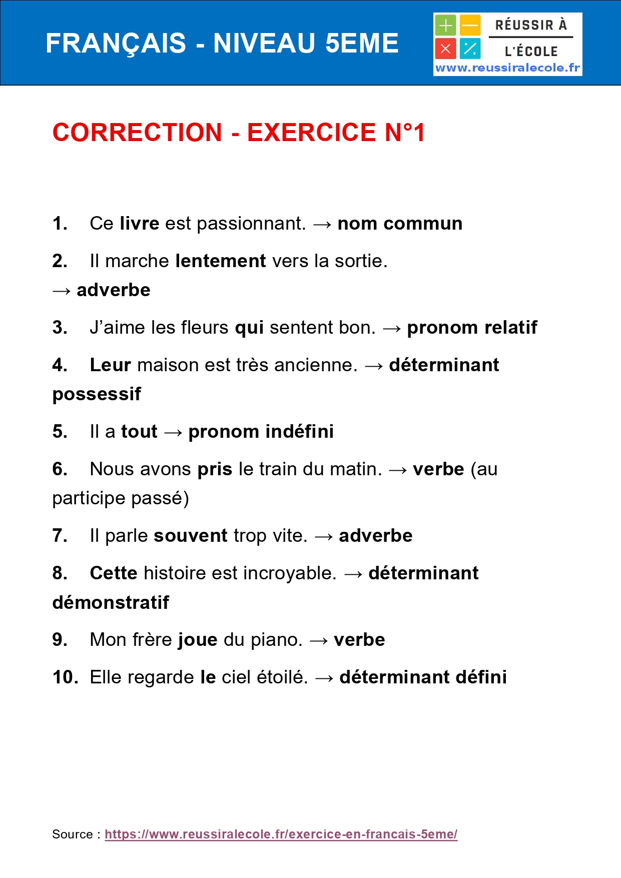 Ce type d exercices de français 5ème avec correction gratuite sont idéaux pour préparer les évaluations de lecture, enrichir le vocabulaire et améliorer la rédaction tout en prenant plaisir à lire et à écrire.