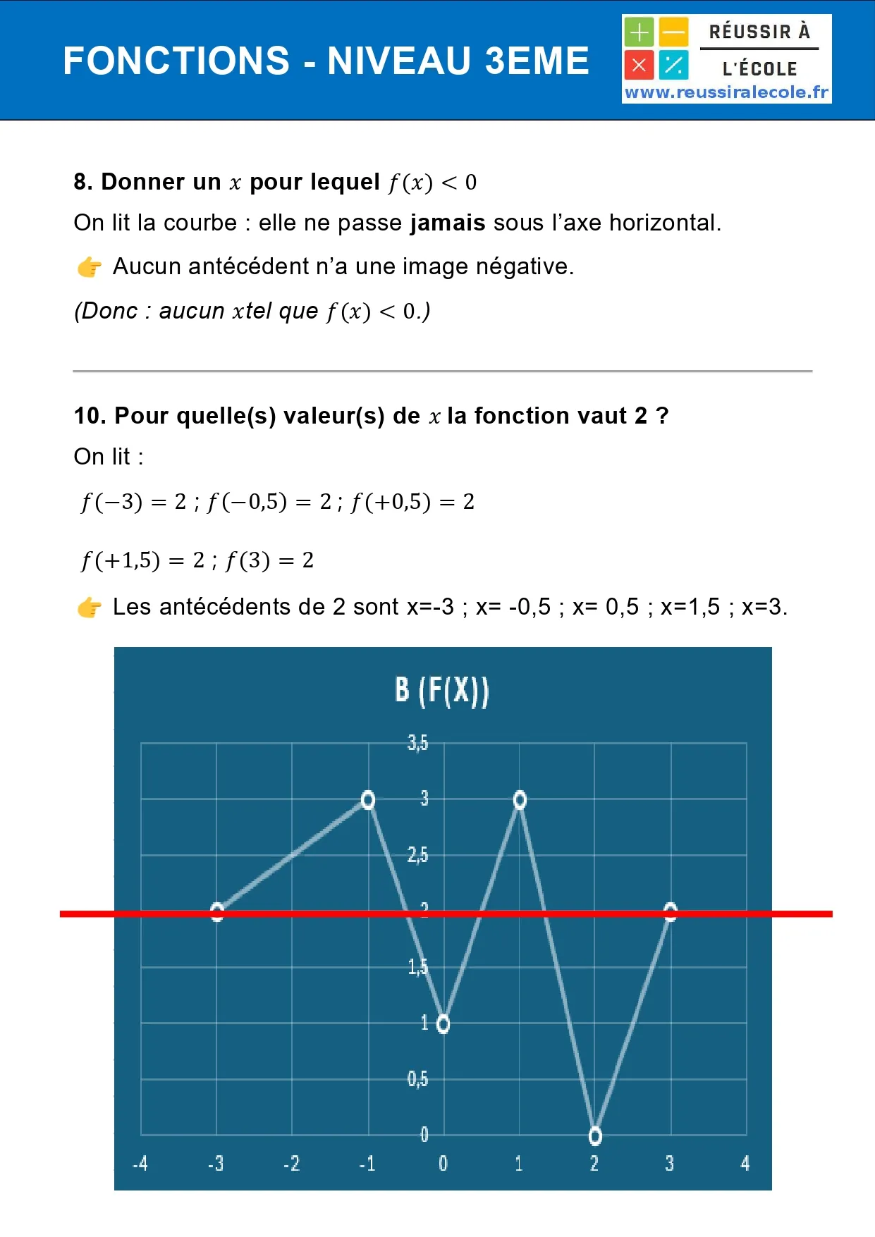 Le premier test permet de revoir les bases essentielles de la représentation d’une fonction, notamment la manière de lire une image, un antécédent, ainsi que l’évolution du graphique.