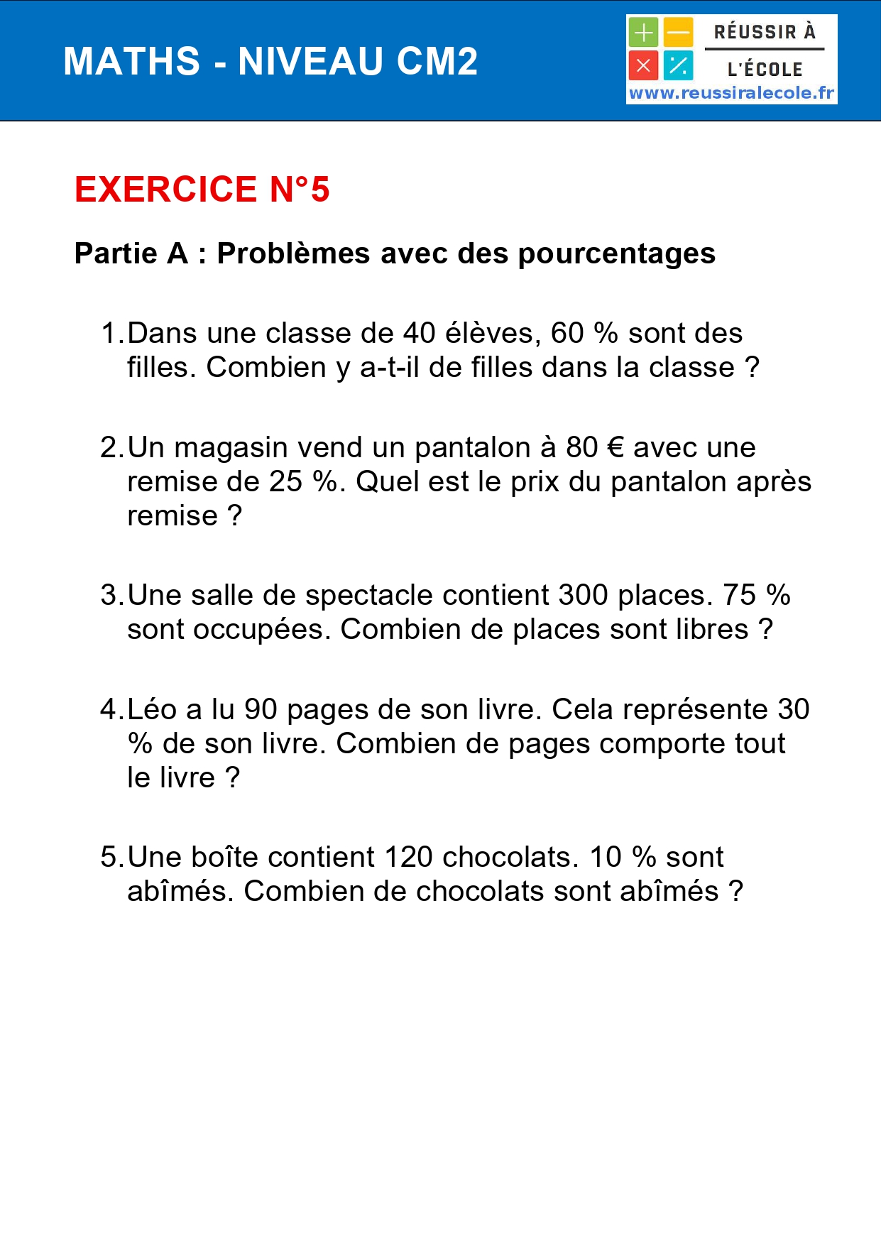 - Exercices en Maths pour CM2 sur les Pourcentages.