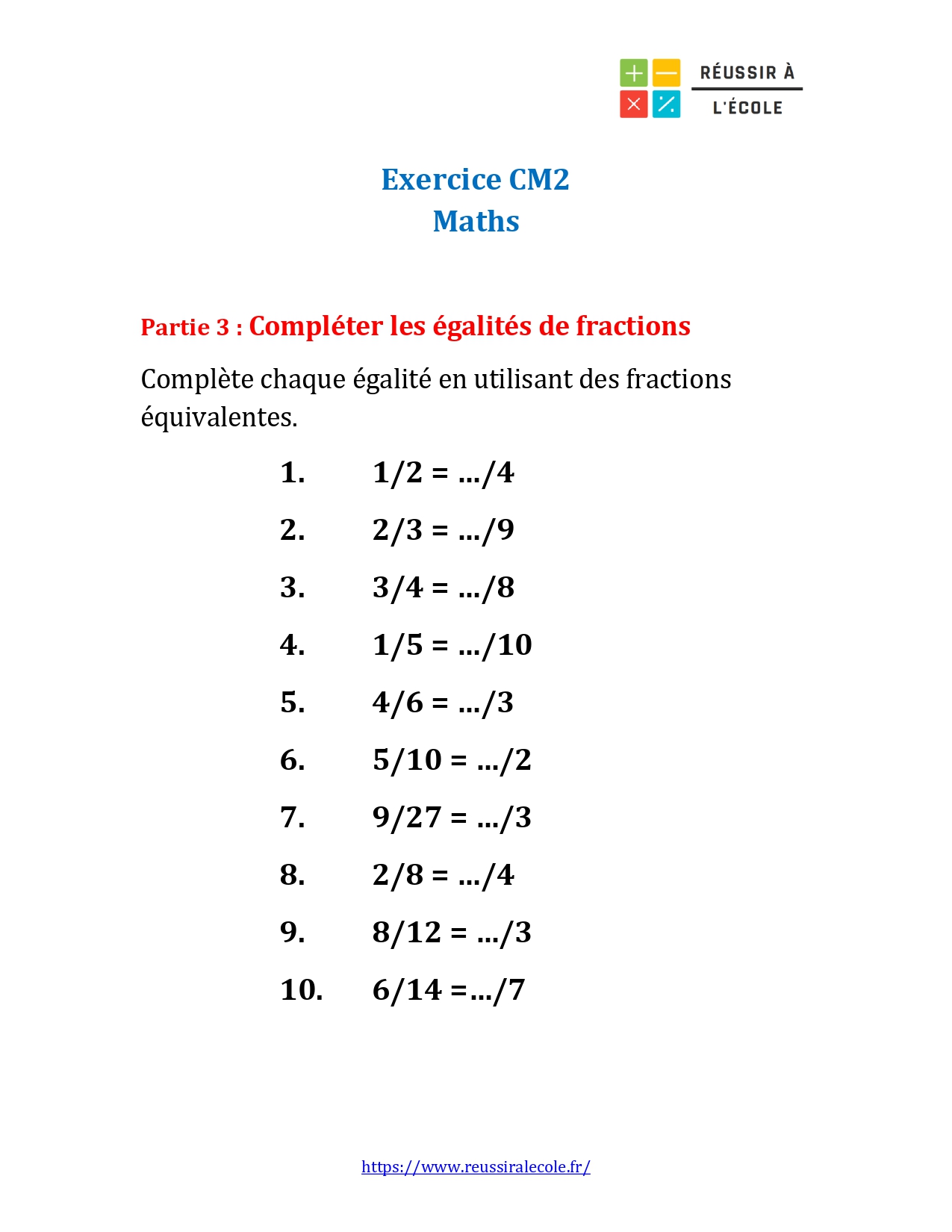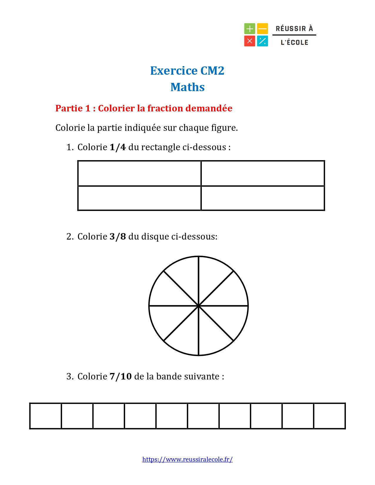 Dans ce premier chapitre, nous vous proposons de télécharger et d’imprimer un exercice sur les maths niveau CM2 (en 3 parties) spécialement conçu pour travailler les fractions de manière progressive et visuelle.