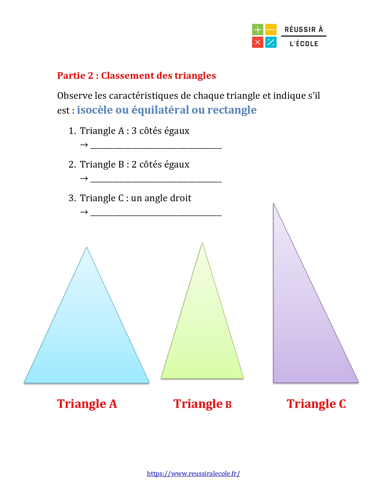 - Reconnaître et différencier les triangles isocèles, équilatéraux et rectangles grâce à leurs propriétés.