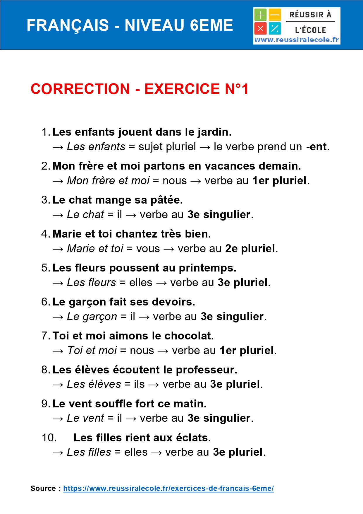 Cet exercice en français niveau 6eme a pour objectif d’aider les élèves à maîtriser l’accord du verbe avec le sujet au présent de l’indicatif, une règle essentielle de la grammaire française.