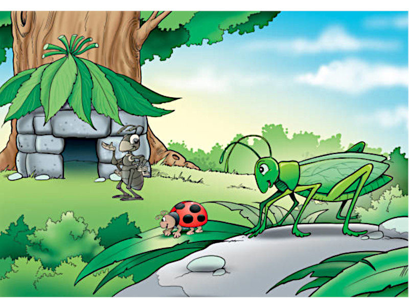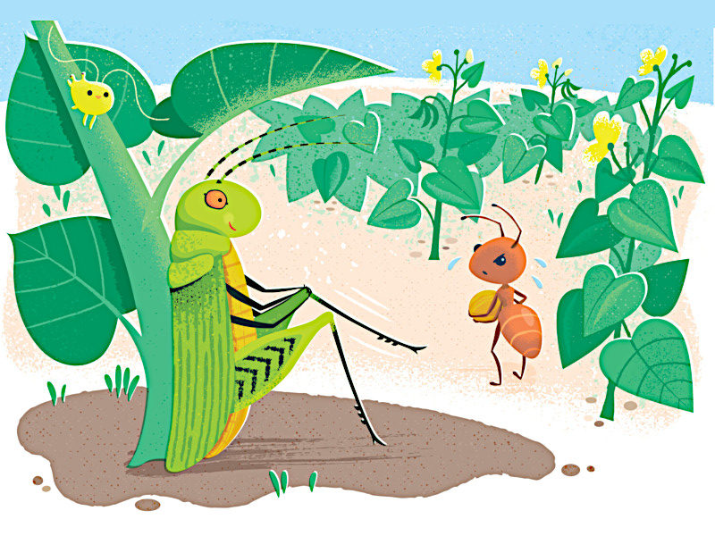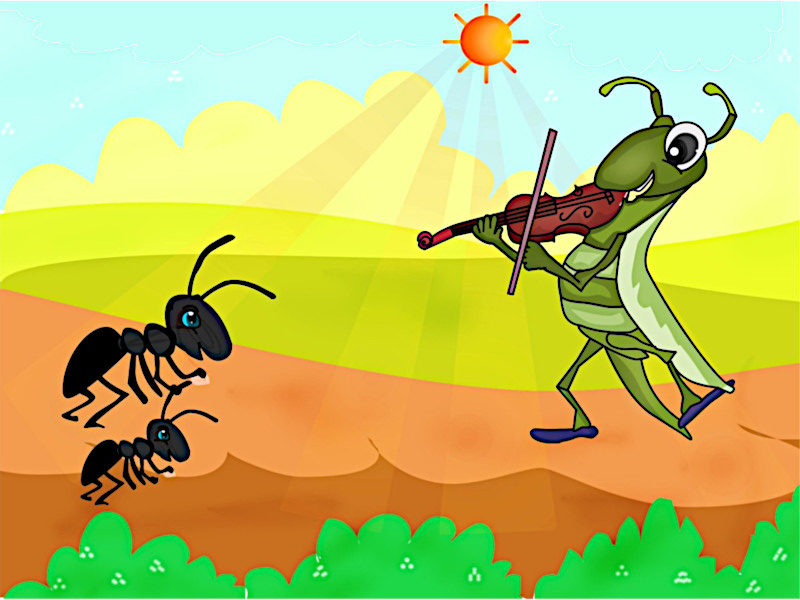 La Cigale, insouciante, passe l’été à chanter et à profiter du beau temps, sans penser au lendemain.