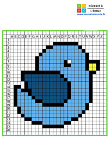 Vous trouverez ce dessin dans notre livre Pixel Art Animaux à télécharger gratuitement. Pour le colorier :