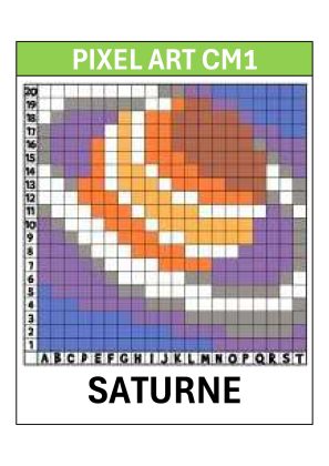Cette rubrique contient des illustrations à imprimer qui vont fasciner les élèves de CM1. En effet, chaque dessin Pixel Art représente une planète du système solaire. Imprimez ces modèles et faites les colorier à vos élèves pour qu’ils découvrent la beauté et le mystère de notre univers.