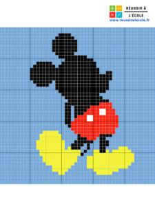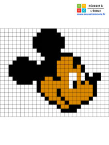 - Mickey Mouse : apprenez à reproduire le célèbre personnage en Pixel Art et à colorier chaque case avec précision.