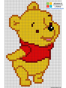 - Winnie l’Ourson : un modèle simple et parfait pour les débutants qui veulent s’initier au Pixel Art.