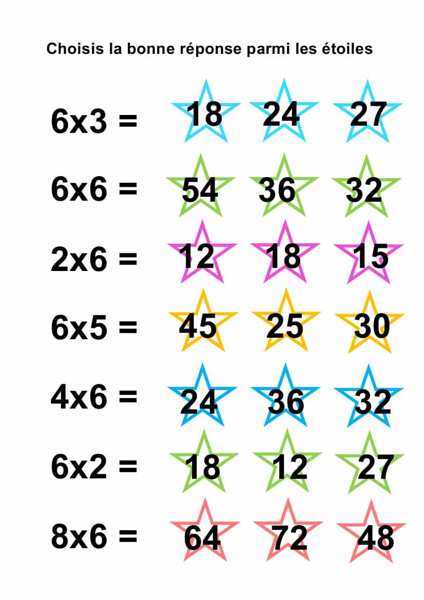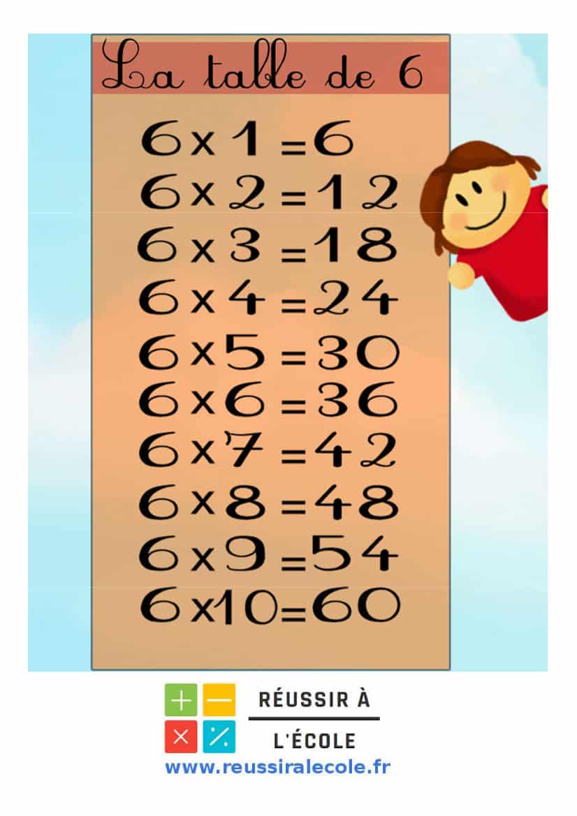- Une affiche avec la table de 6 à imprimer en format A4 (ou plus grand si vous préférez)