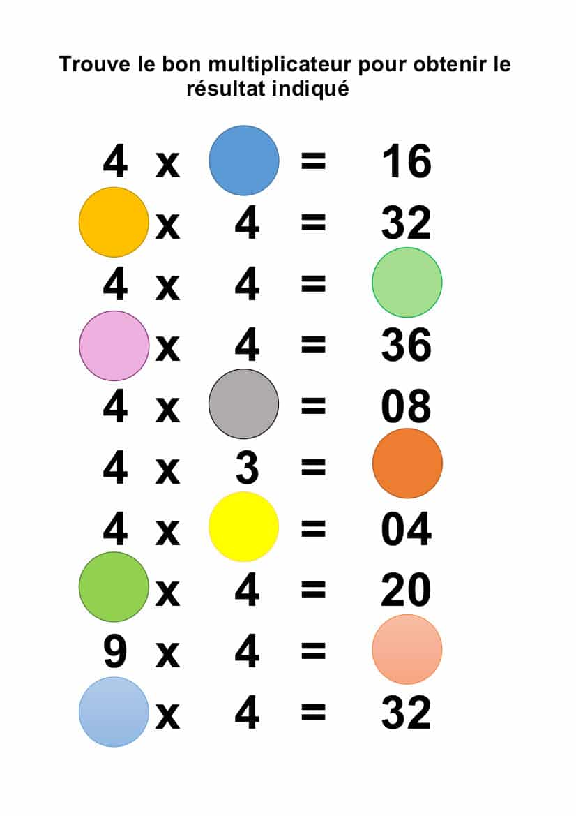 En effet, sur cette page consacrée à l’apprentissage de la table de 4, nous avons :